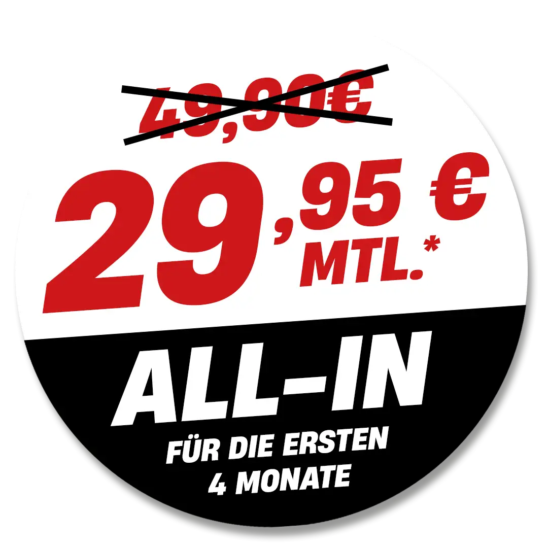 Mindestvertragslaufzeit von 24 Monaten. Alle Preise inkl. MwSt.. Aktion ist standortabhängig verfügbar.