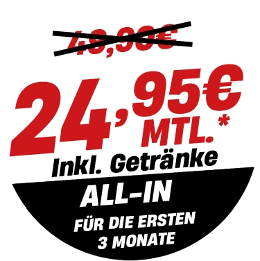 Mindestvertragslaufzeit von 24 Monaten. Alle Preise inkl. MwSt.. Aktion ist standortabhängig verfügbar.